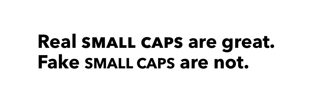 Some books use small caps, but don’t use a typeface with proper small caps, rather using capital letters that are set at a smaller font size. This is jarring because of the difference in font weight. Compare: