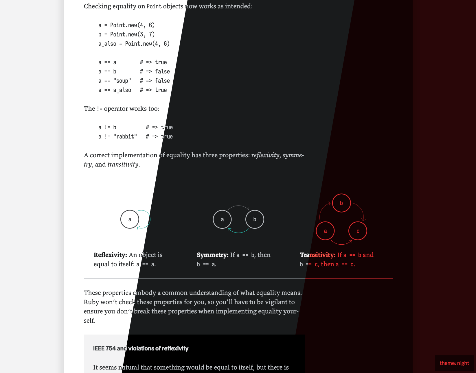 Creating the theme was remarkably easy. My web site is well maintained and making changes to it is pretty straightforward. I got the idea for a “night” theme one morning, and the implementation went live just after breakfast.